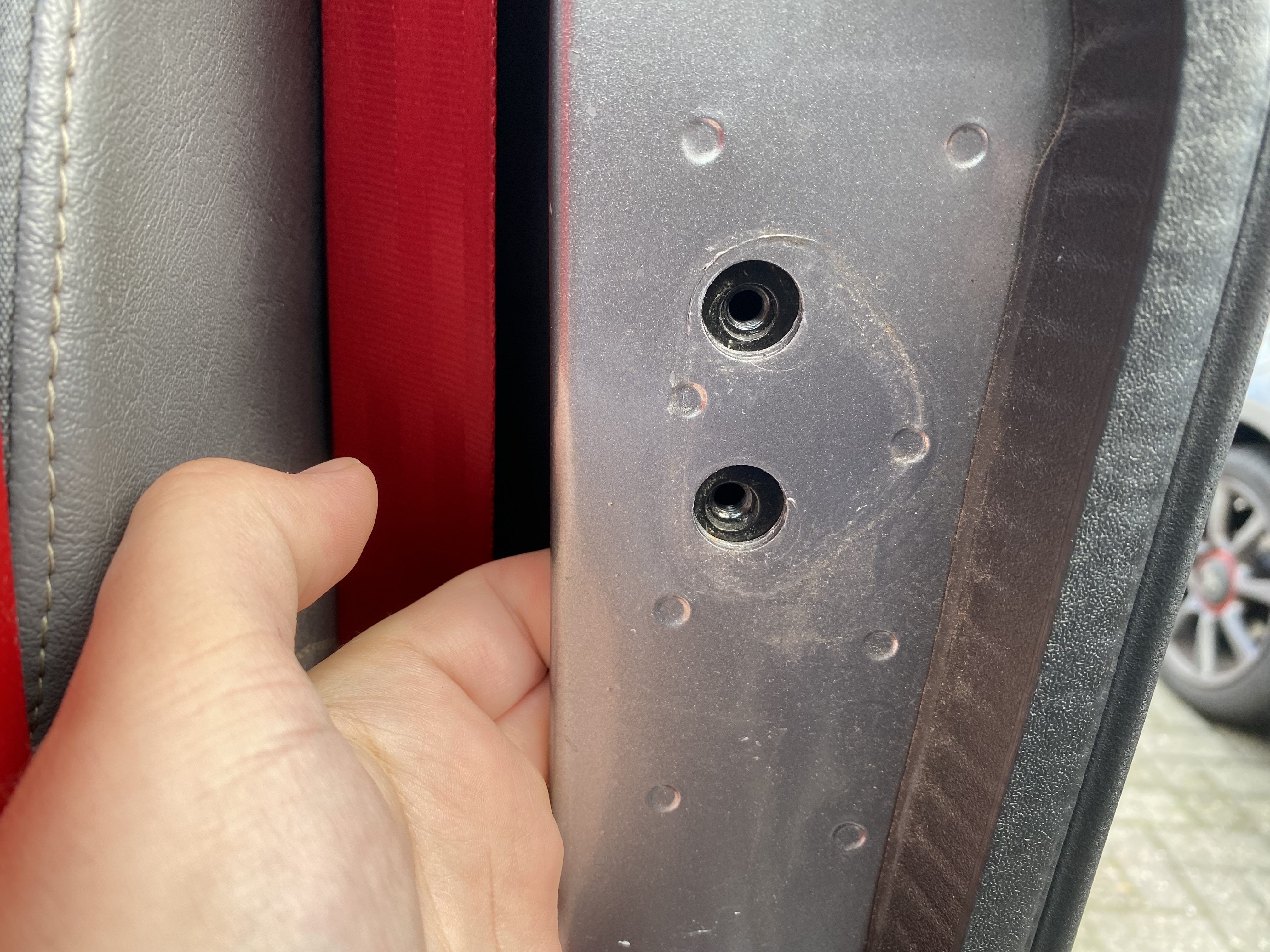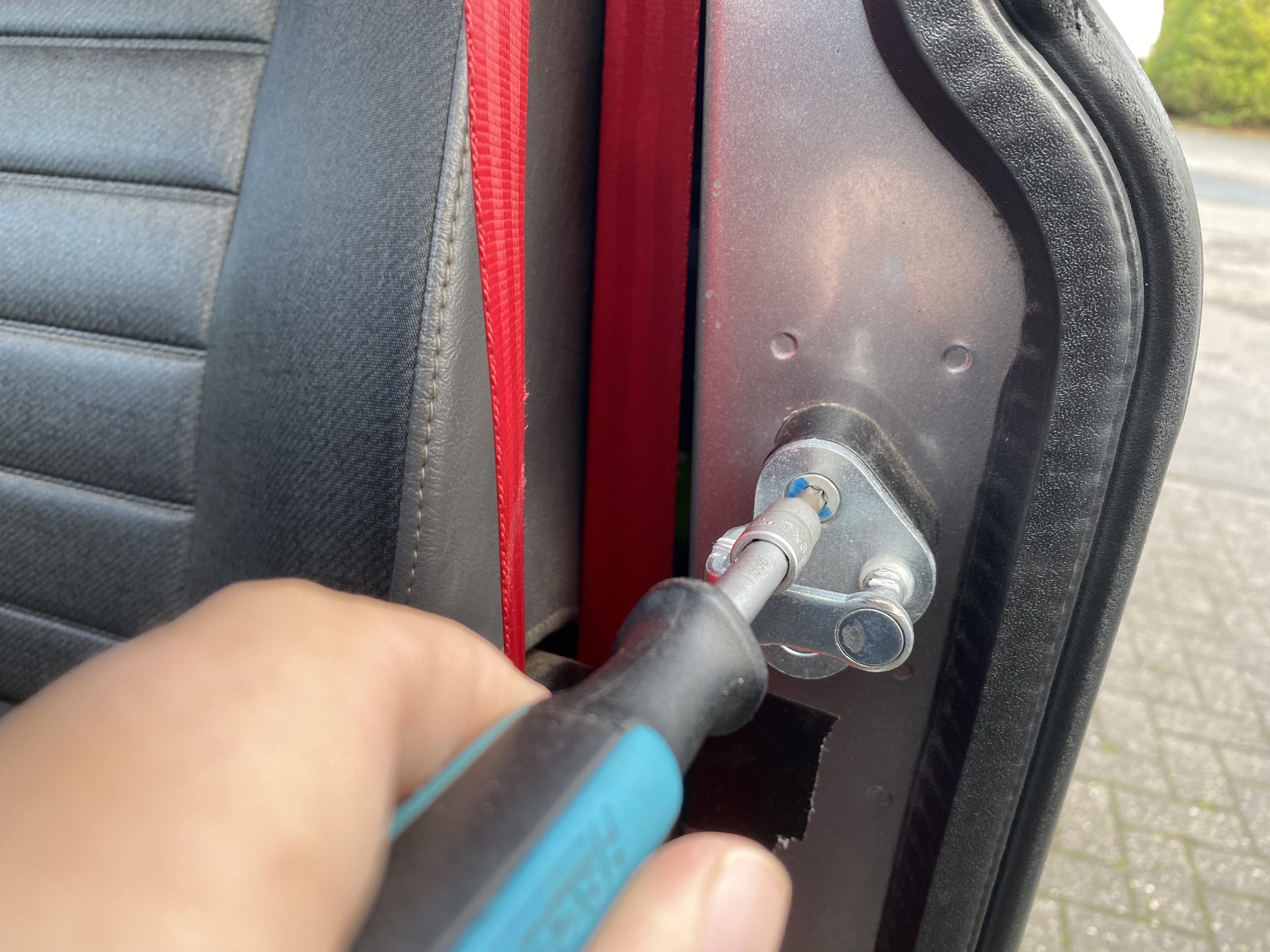 In der B-Säule sitzt eine lose Mutternplatte, die beim Lösen etwas absacken kann. Kein Problem: Man erreicht sie problemlos mit der Hand und kann sie beim Festschrauben wieder richtig positionieren.